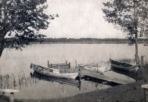 Лодочная пристань на берегу оз. Дуденево. Начало ХХ века.