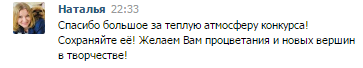 Спасибо за теплый, доброжелательный прием и гостеприимство! У нас остались самые приятные впечатления о поездке! Жду обещанную информацию о конкурсах.
