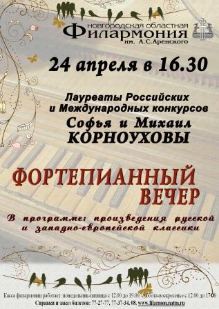 Софья Корноухова -  учащаяся школы-студии при Новгородском областном колледже  искусств им. С.В. Рахманинова. Софья занесена во всероссийскую энциклопедию  «Одаренные дети – будущее России».